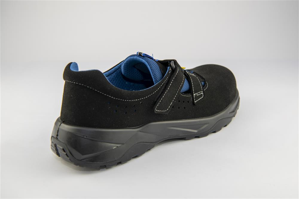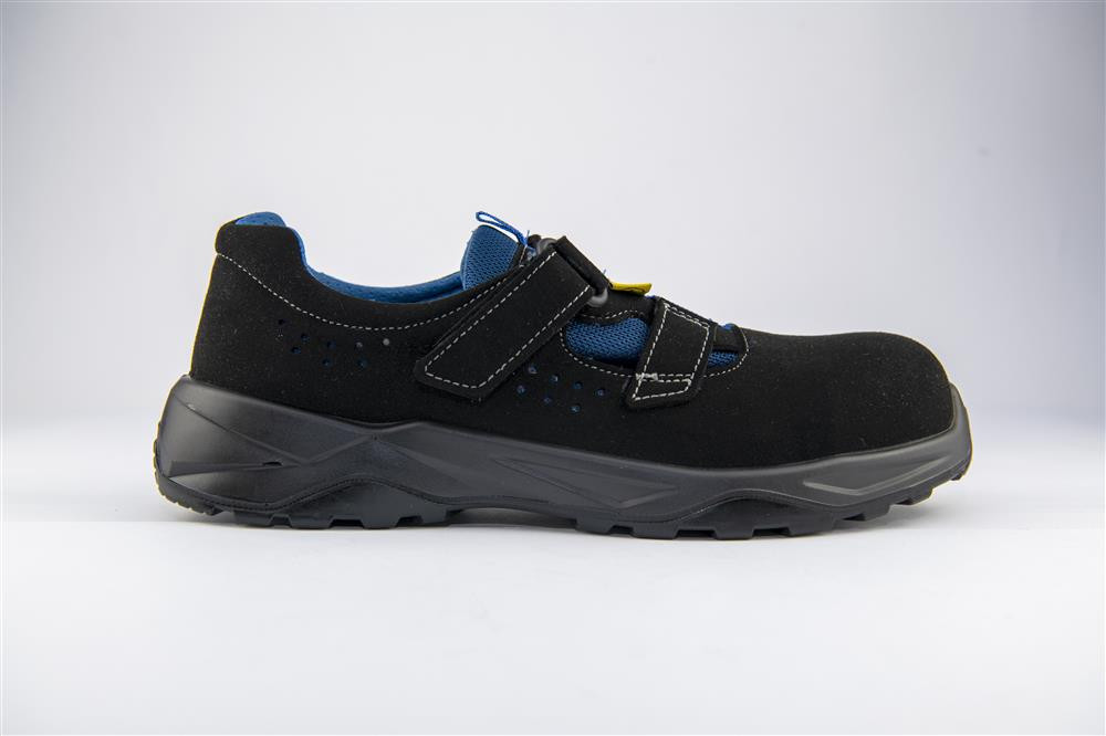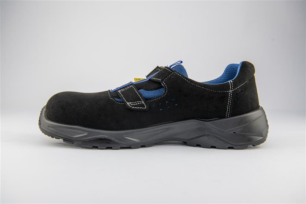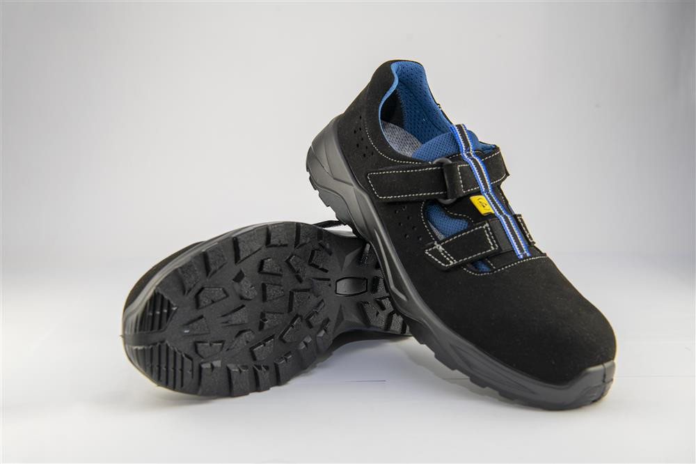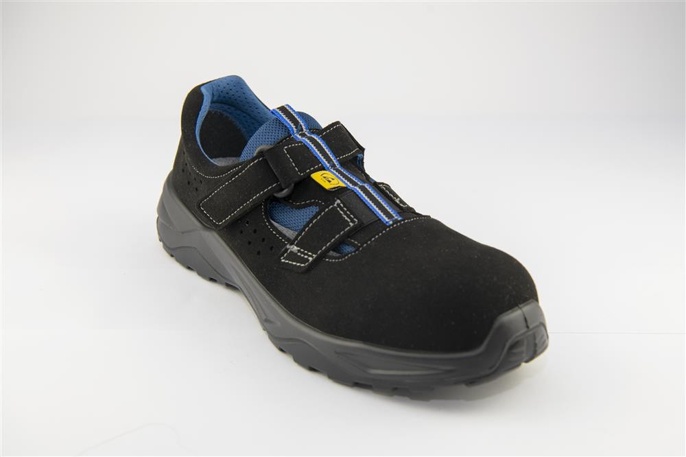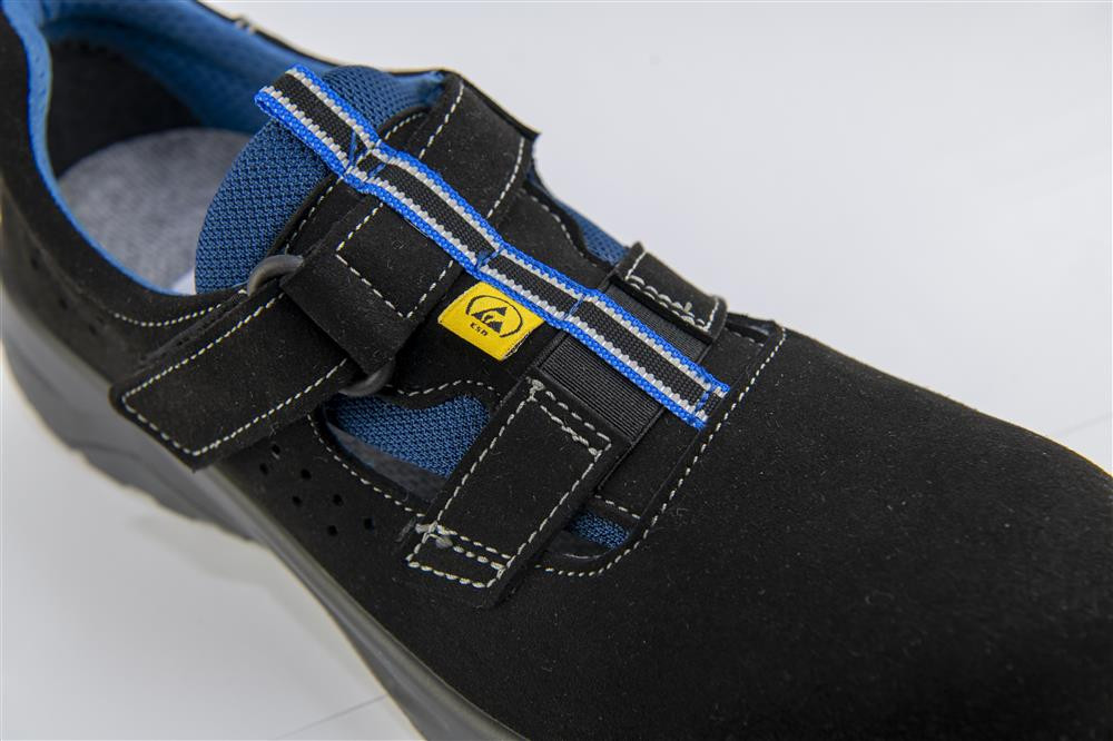 ESD tépőzáras szandál, zárt kéregrésszel, nem fém átszúrásmentes talpvédelemmel, kompozit orrmerevítővel, energiaelnyelő sarokrésszel, lábkényelmi talpbetéttel.